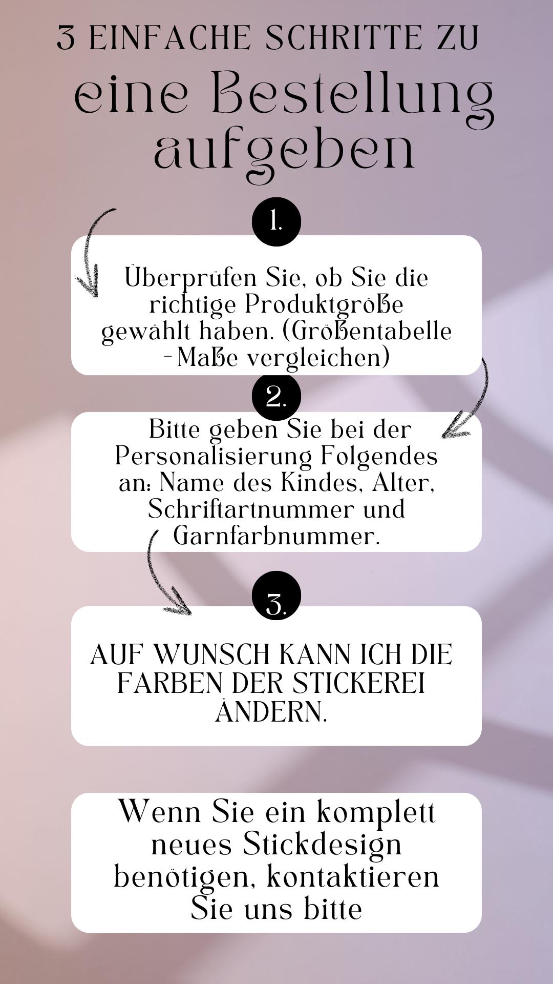 Waschempfehlung: Handwäsche bei maximal 30*, damit die Stickerei nicht beschädigt wird