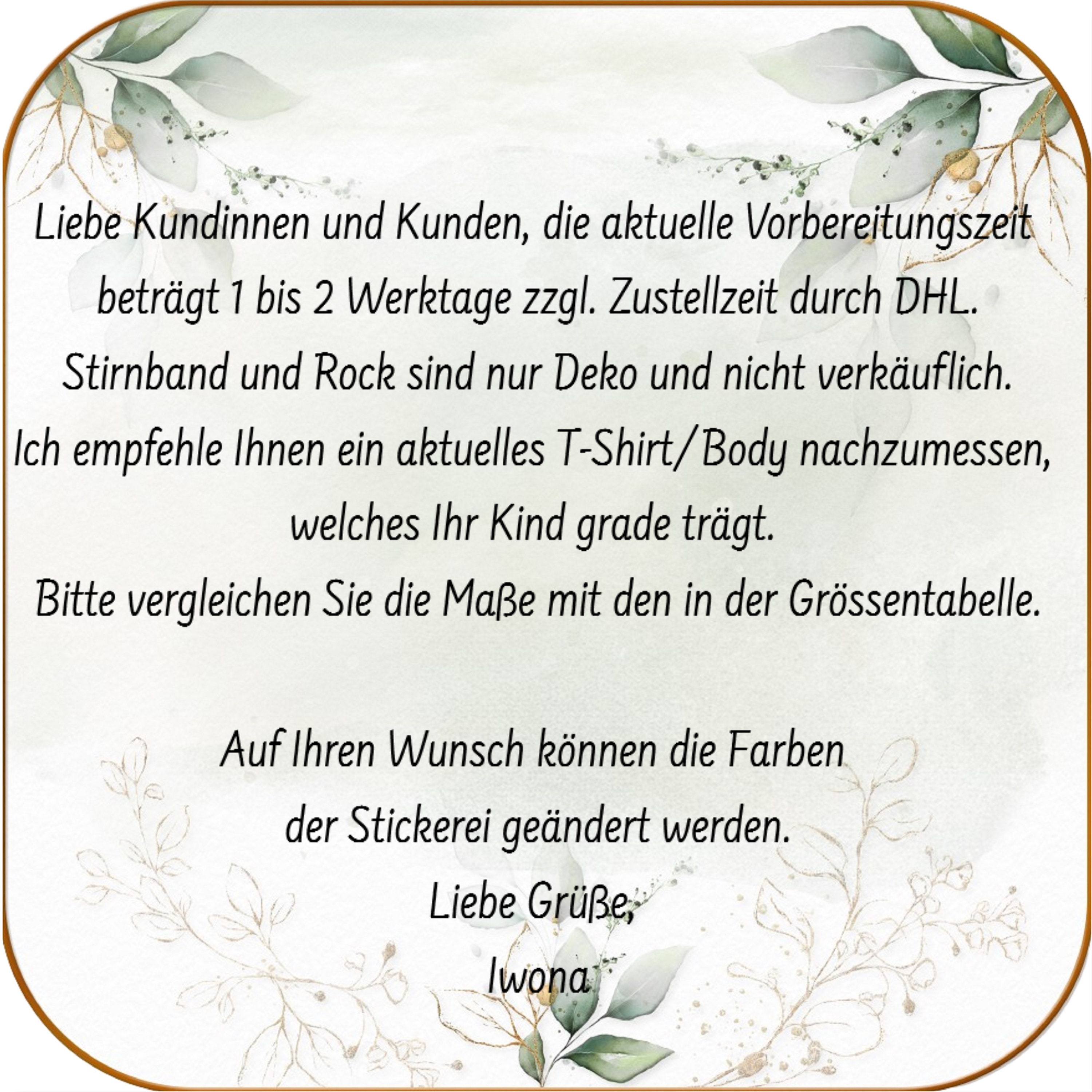Mega mega süßes Oberteil. Total tolle Qualität. Freu mich nun auf den 1. Geburtstag unserer kleinen.
