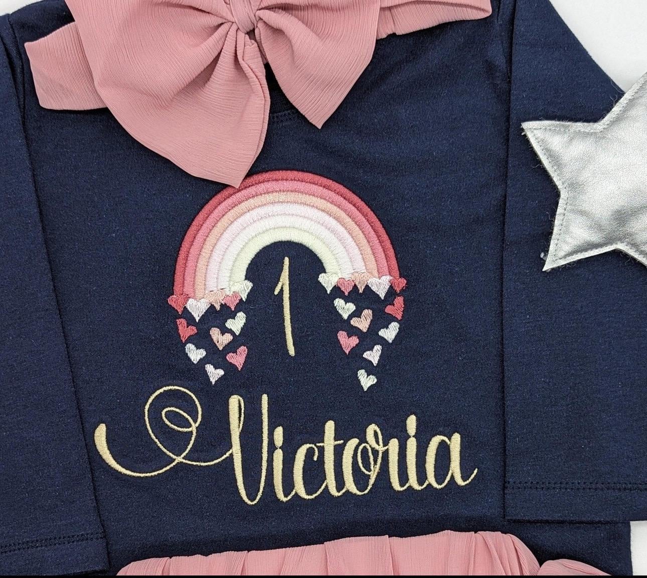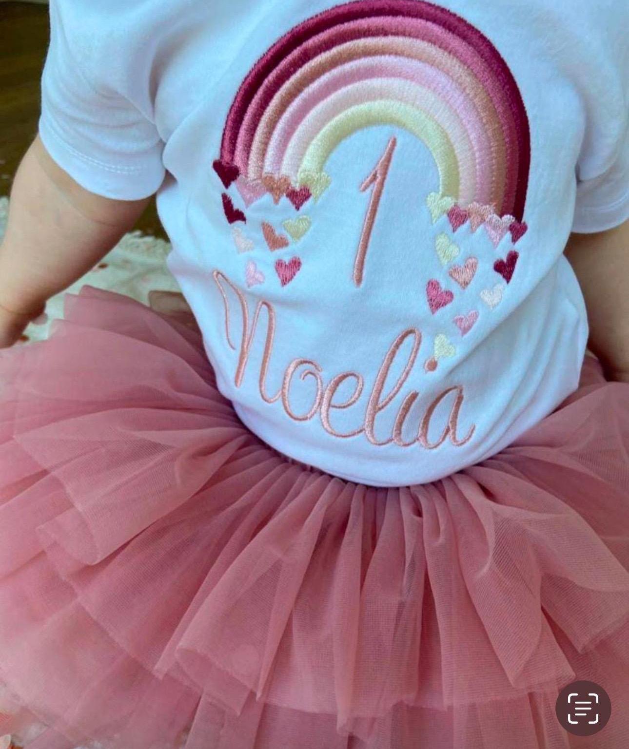 Regenbogen Geburtstagsshirt Mädchen mit Name und Zahl -1 2 3 4 5 6 7 - in Pastellfarben, Geburtstagsparty Outfit Kindershirt