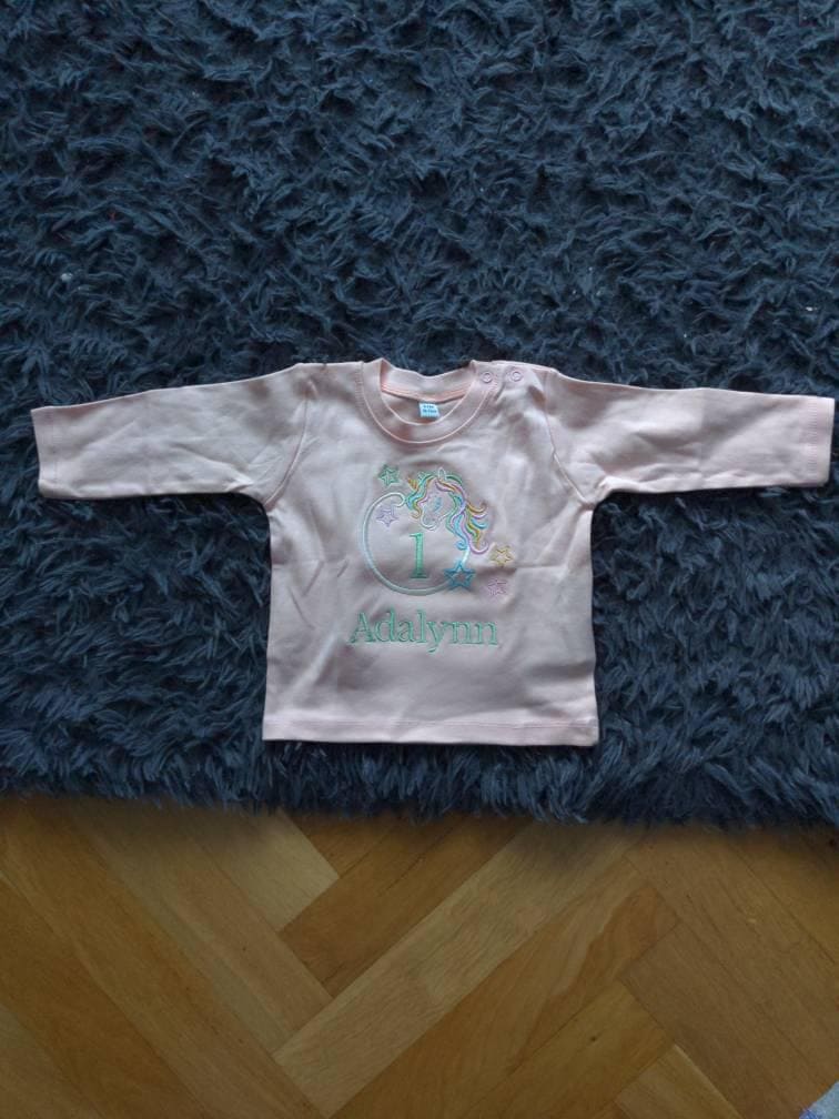 Personalisiertes Einhorn Geburtstagsshirt mit Name und Zahl Mädchen, Oberteil Geburtstagsoutfit erster Jahr, Geschenk für Kinder 1,2,3
