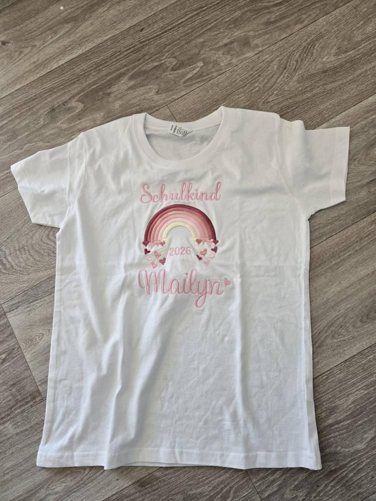 Schulkind 2026 Shirt Mädchen personalisiert mit Name, besticktes Einschulung T-Shirt, Geschenk zum Schulanfang, erster Schultag Outfit