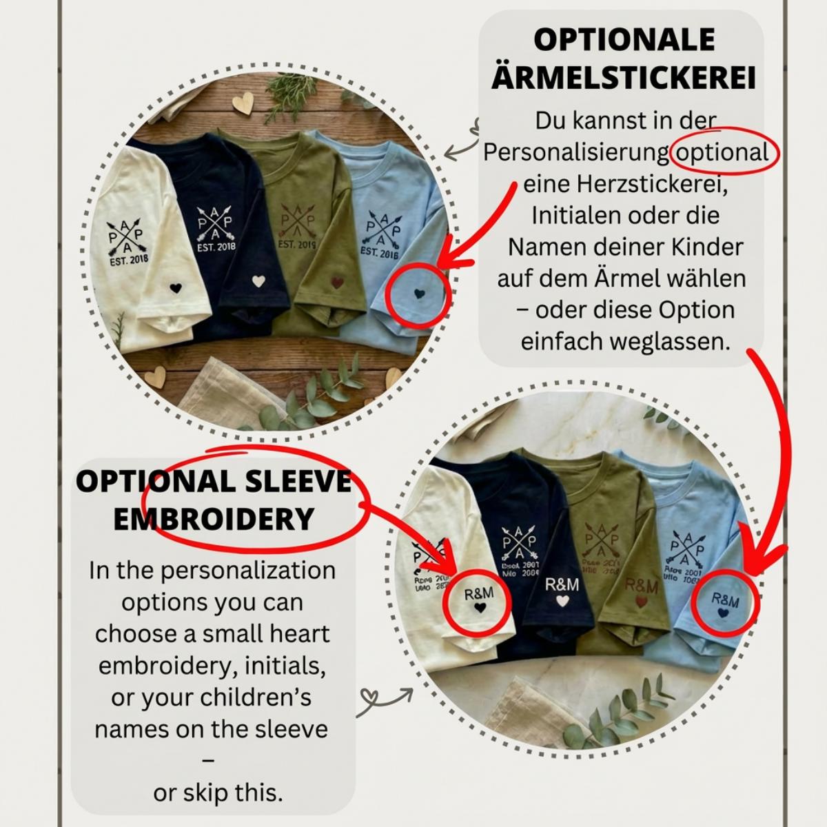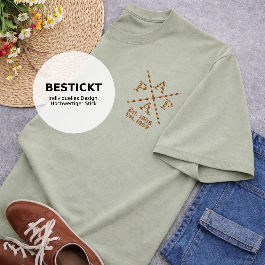 Embroidered T-shirt for dads, personalized with the child's name and birth year – a special gift for Father's Day or the birth of a child.