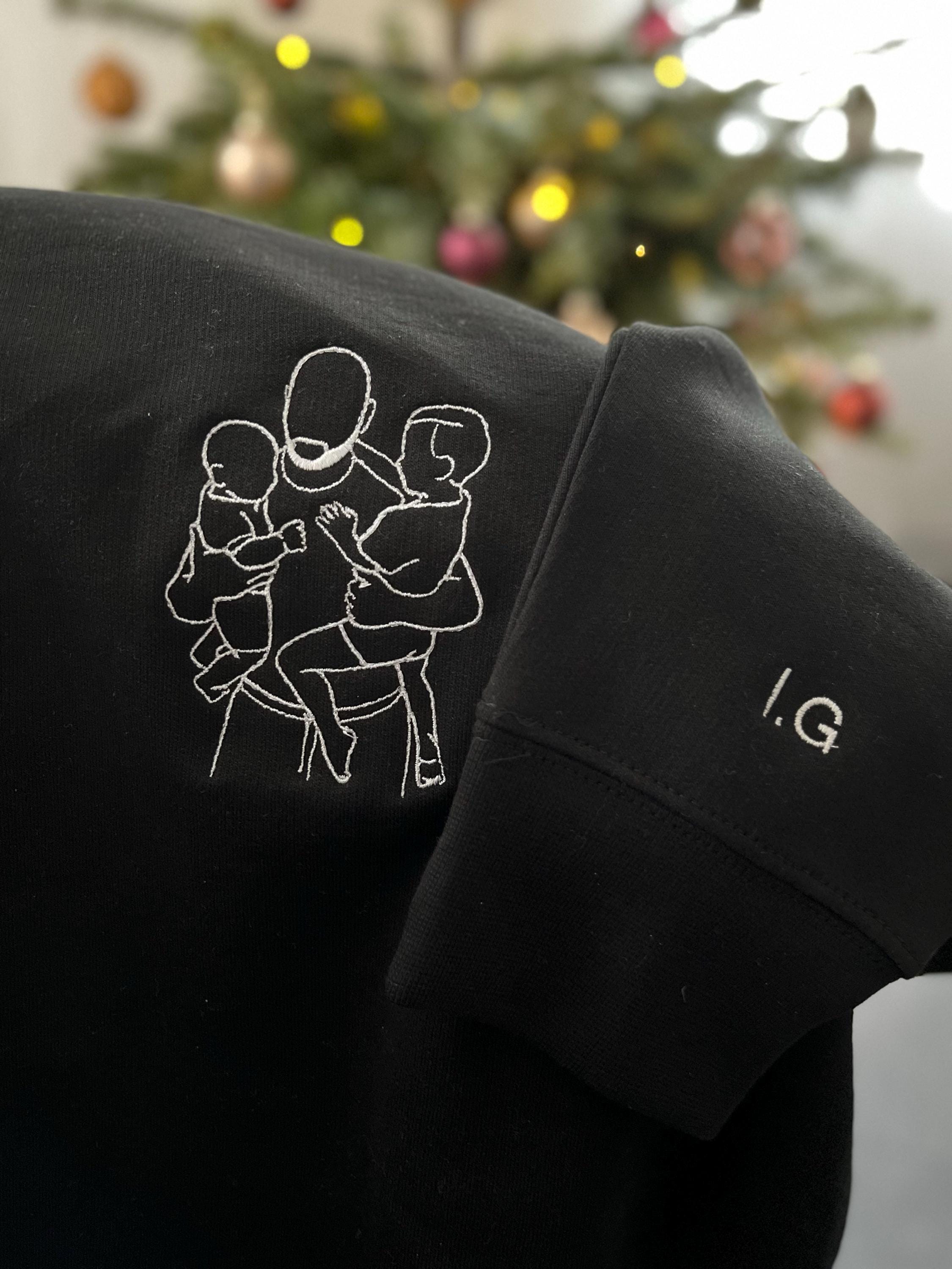 Papa Personalisierter Weihnachtsgeschenk Bestickter Hoodie, Vatertagsgeschenk Fotostickerei, Sweatshirt Line Art für, Geburtstagsgeschenk für Opa, Jahrestag