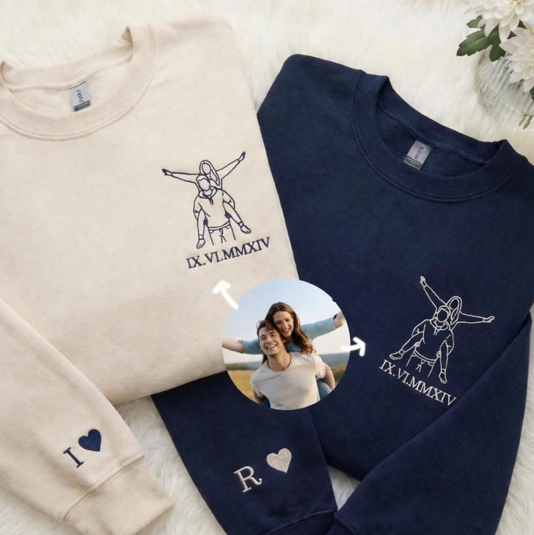 Papa Personalisierter Bestickter Hoodie, Vatertagsgeschenk Fotostickerei, Kinderzeichnung, Haustierfoto Personalisiertes Weihnachtsgeschenk