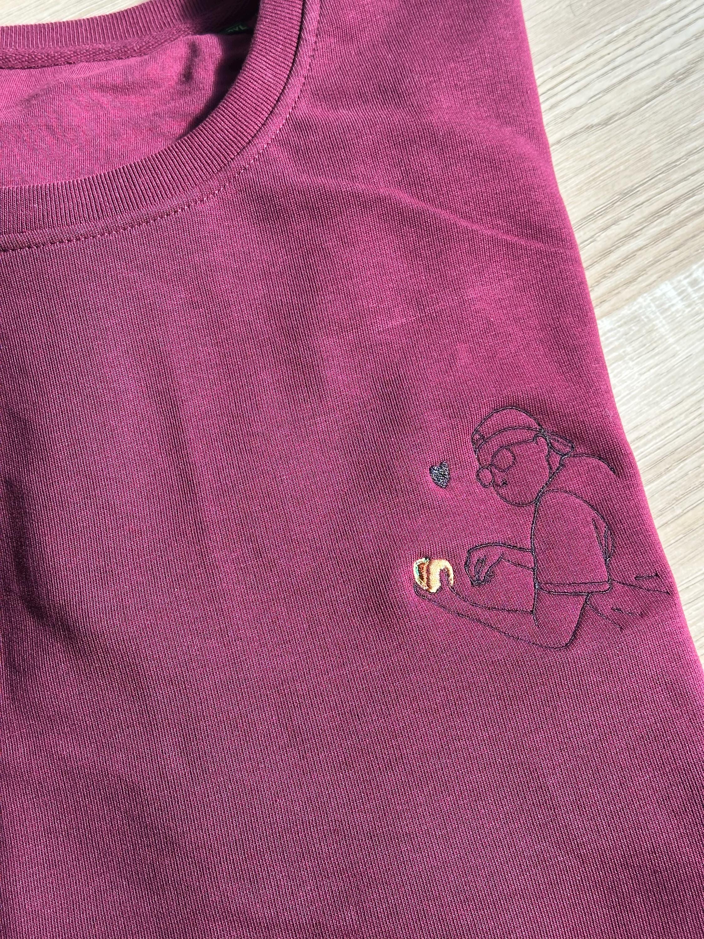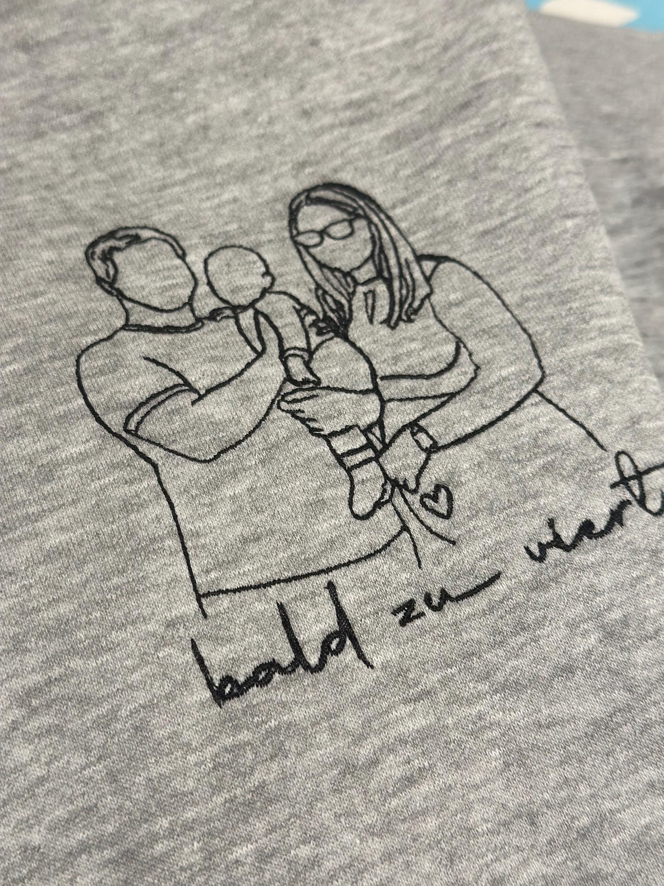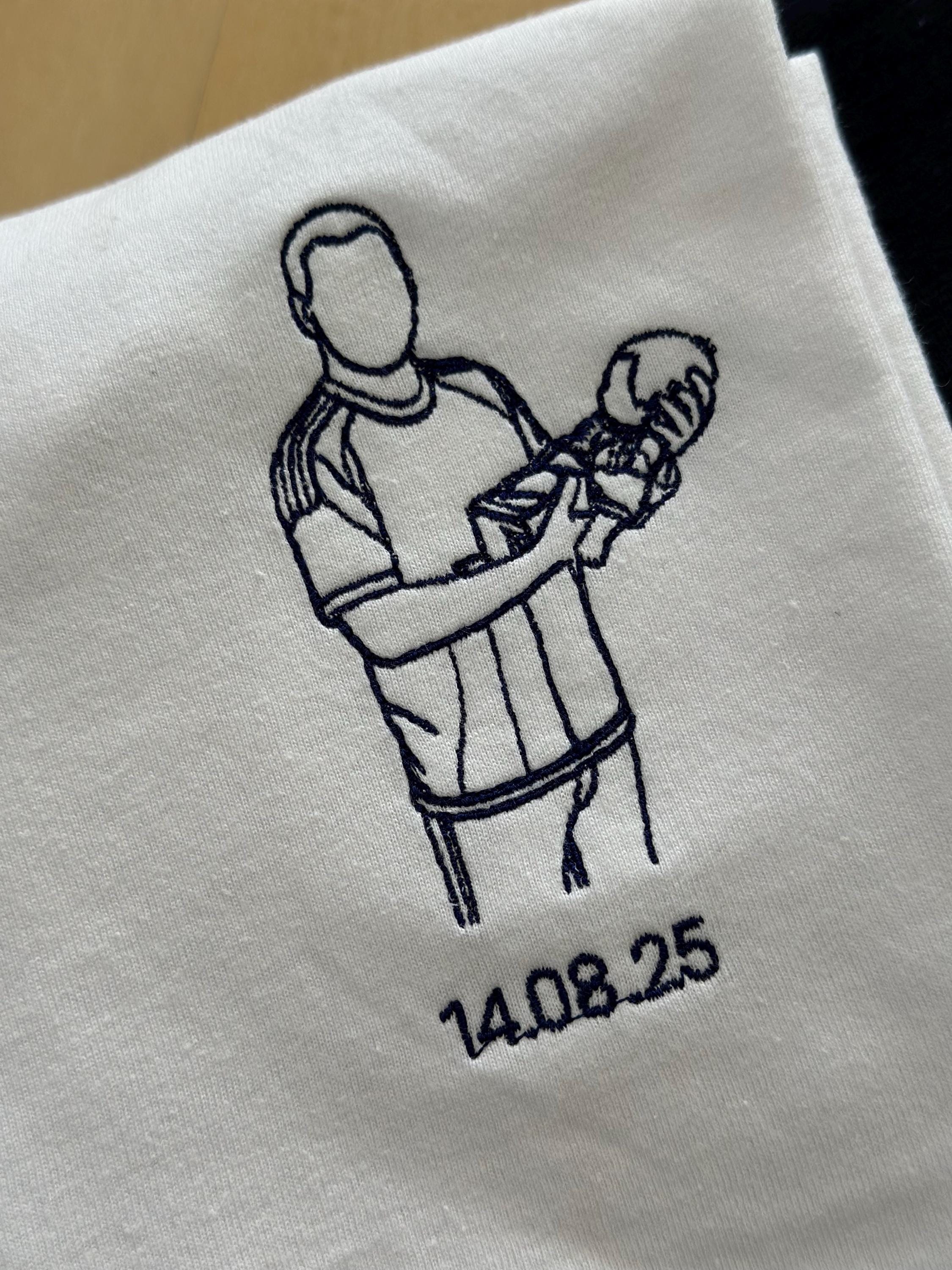 3ïžâŁ Wir erstellen ein einzigartiges Line-Art-Design und sticken es sorgfĂ€ltig auf dein Shirt.