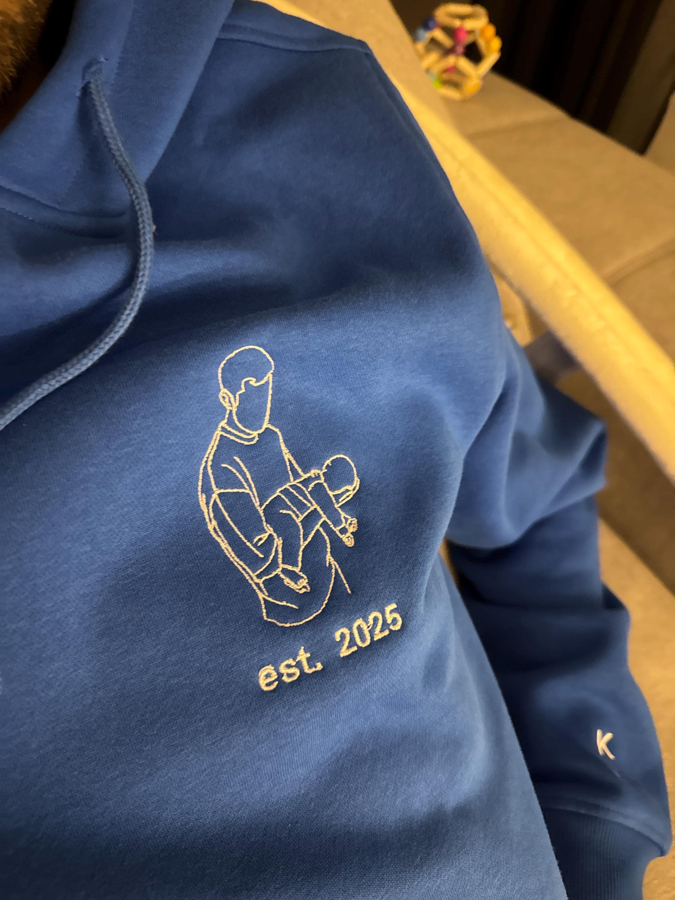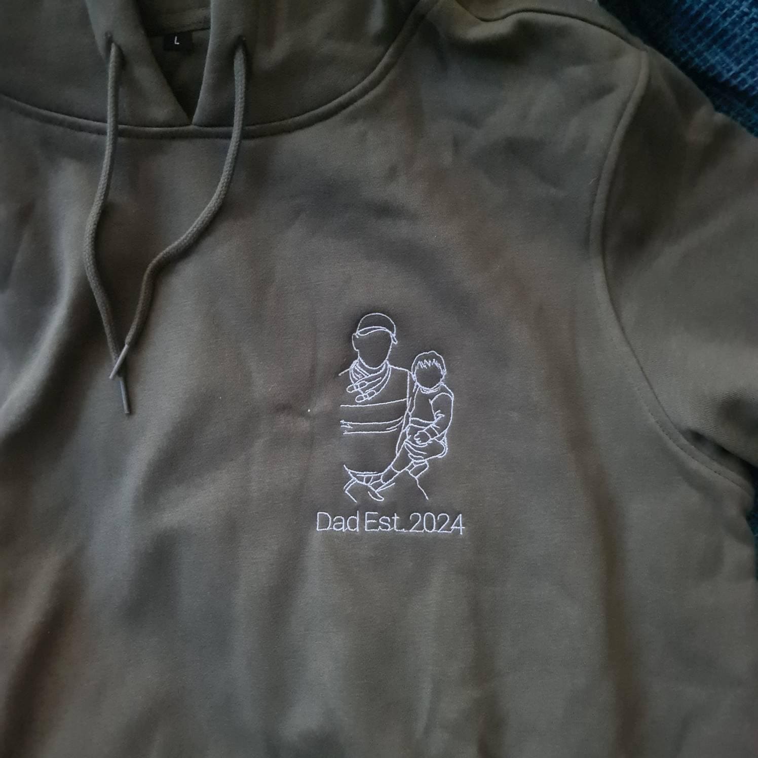 Papa Personalisierter Bestickter Hoodie, Vatertagsgeschenk Fotostickerei, Kinderzeichnung, Haustierfoto Personalisiertes Weihnachtsgeschenk