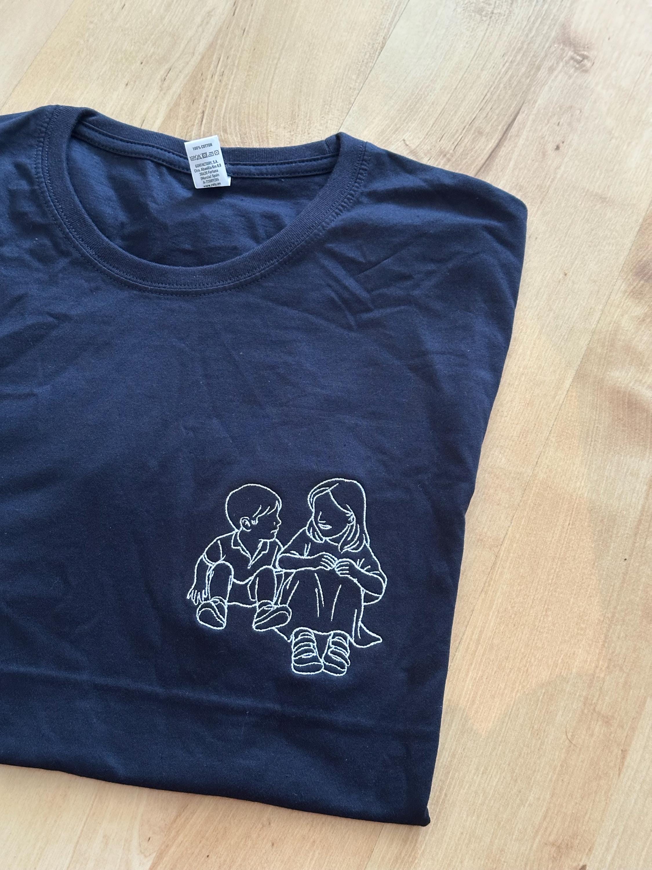 3️⃣ Wir erstellen ein einzigartiges Line-Art-Design und sticken es sorgfältig auf dein Shirt.