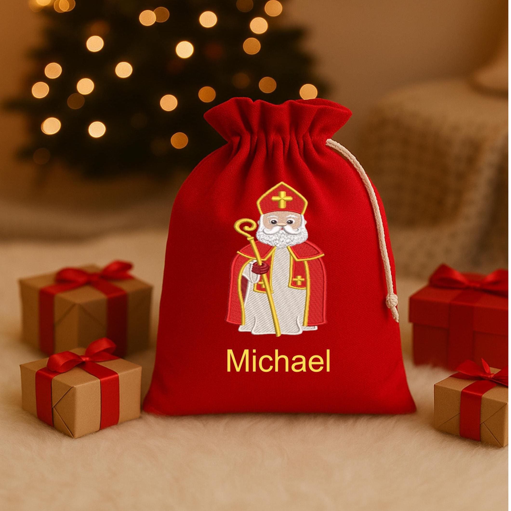 Personalisierter Nikolaussacker mit Bestickung ,100 % Baumwolle Weihnachtssäckchen personalisiert mit Name, Nikolausgeschenk Weihnachtsmann