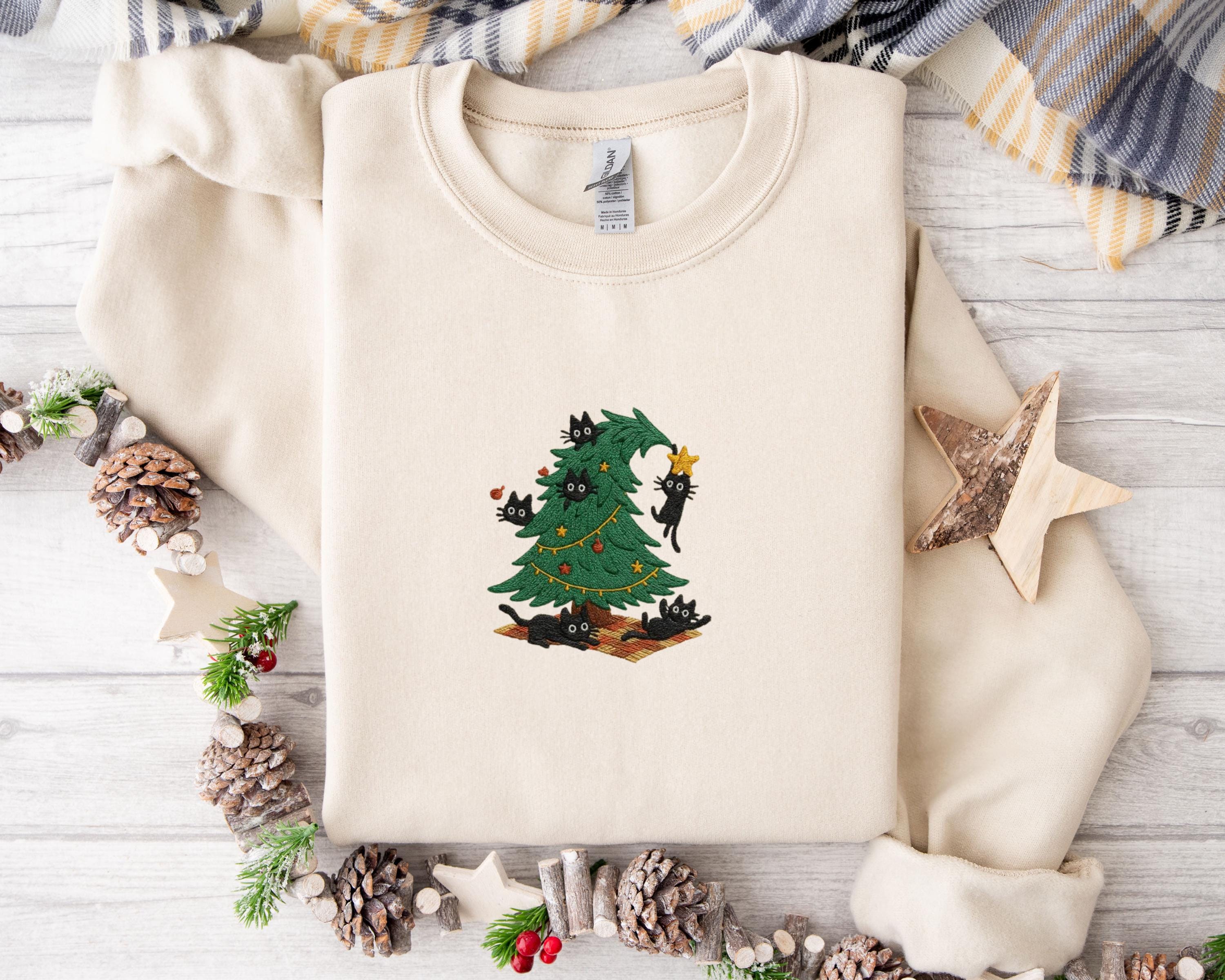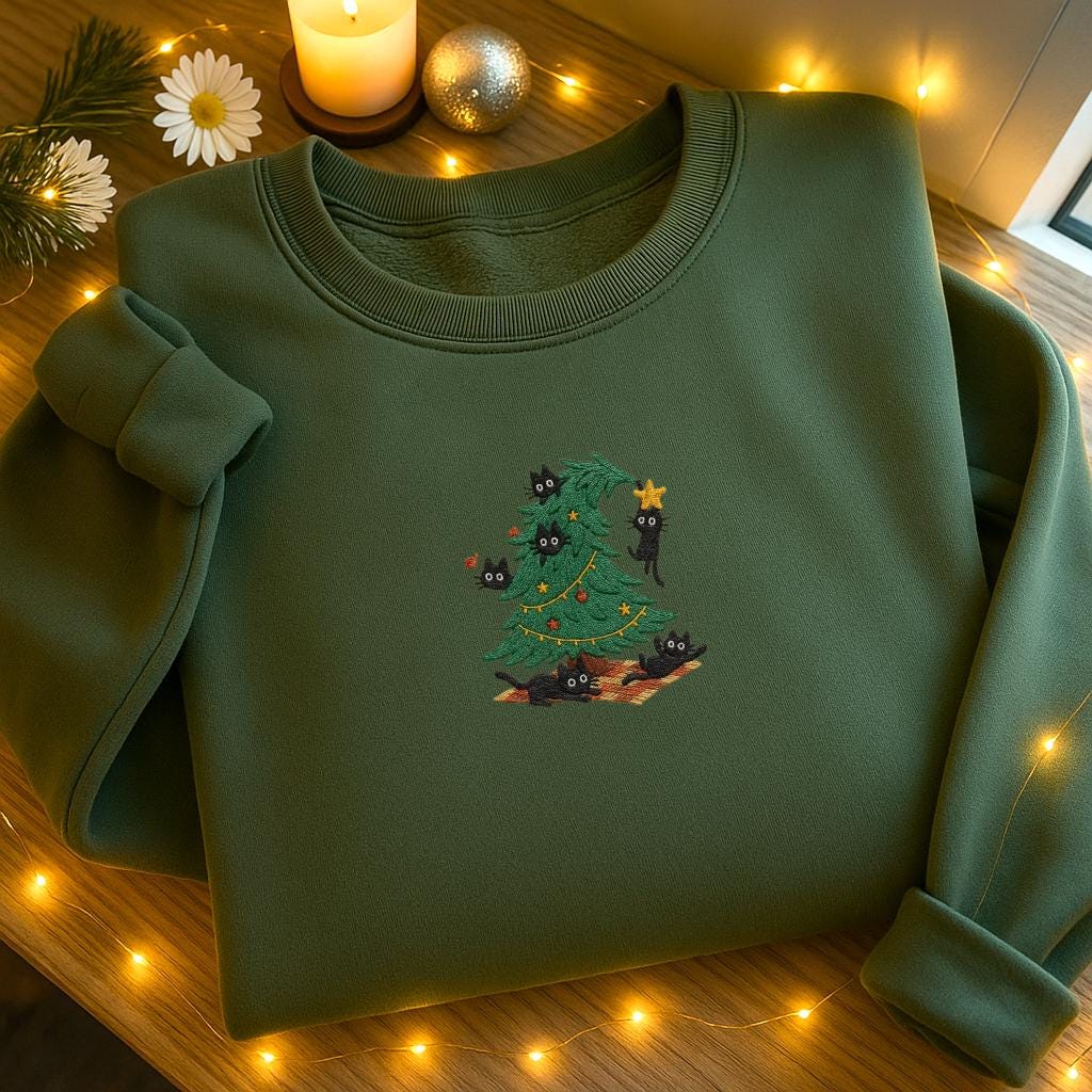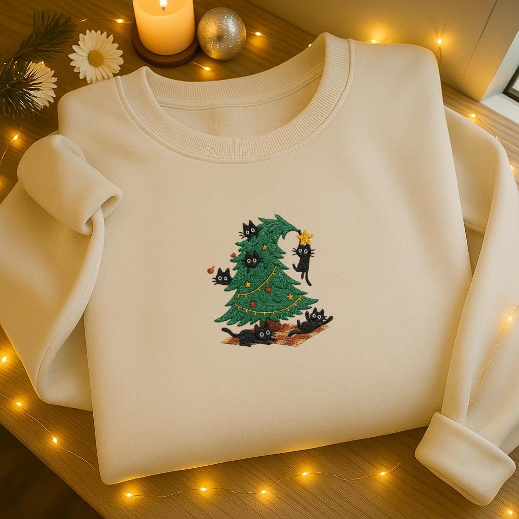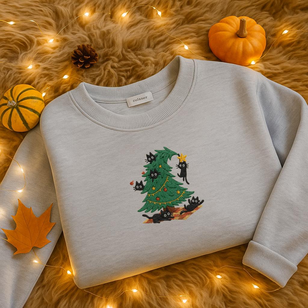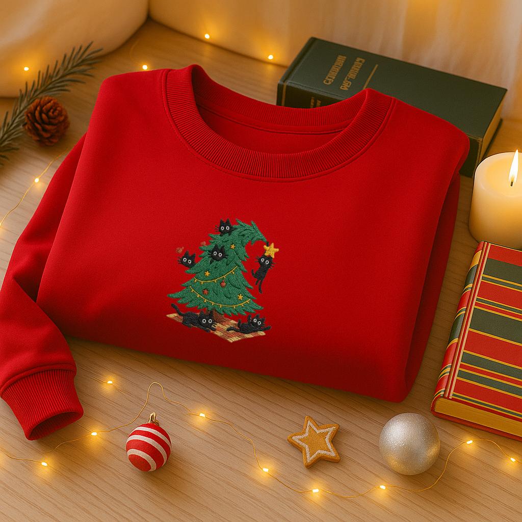 Dieser bestickte Weihnachtspullover mit Katzenmotiv ist die perfekte Mischung aus kuscheligem Winterkomfort, hochwertiger Verarbeitung und einem Hauch Weihnachtszauber.
