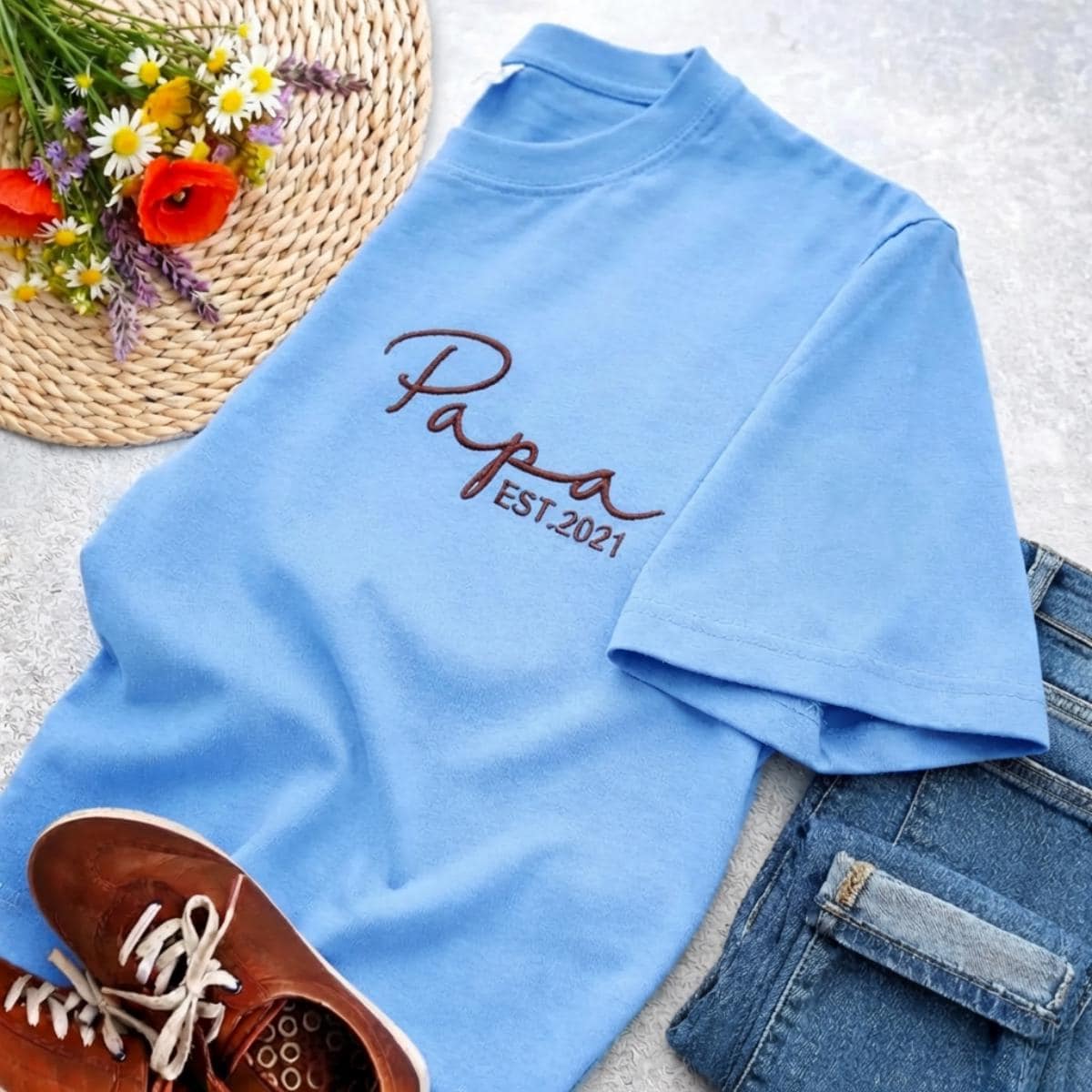 Das personalisierte T-Shirt mit DAD Stickerei ist das perfekte Geschenk für stolze Väter.